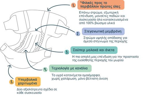Απορροφητικός πυρήνας: Πλήρως χωρίς χλώριο πιστοποιημένος πολτός από FSC® και SAP βιολογικής βάσης
